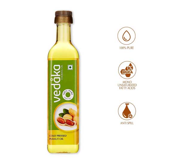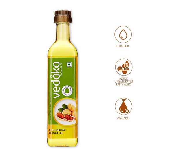 Amazon Brand – Vedaka Cold Pressed Peanut (Groundnut) Oil Bottle, 500ML | 100% Pure & Unrefined | Rich in MUFA & Omega-6 PUFA | Multipurpose Edible Oil | Contains Natural Anti-Oxidants